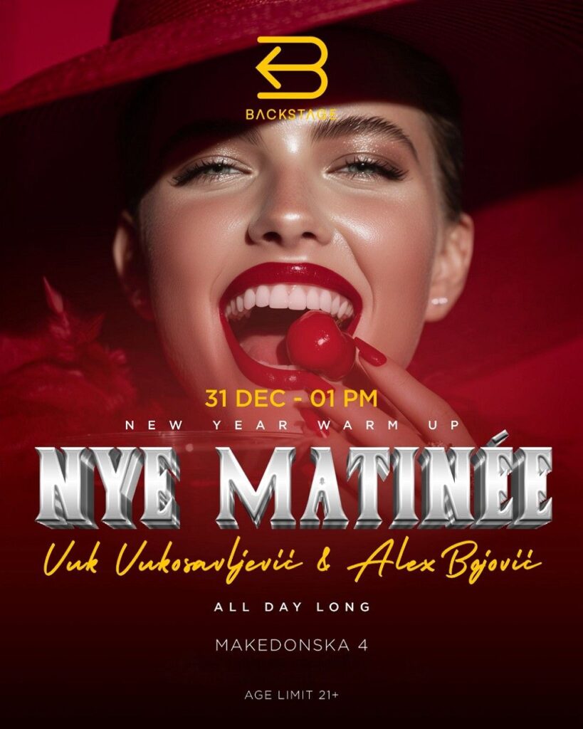 Proslavite doček Nove godine 2026. u Backstage Bar Matinee, gde vas očekuje nezaboravna noć ispunjena muzikom i veseljem. Ovaj događaj je savršena prilika da uživate u domaćoj atmosferi, uz srdačnost i prijateljsku uslugu. Besplatan ulaz omogućava svima da se pridruže slavlju i uživaju u nastupu talentovanih izvođača, Vuka Vukosavljevića i Alex Bojovića.