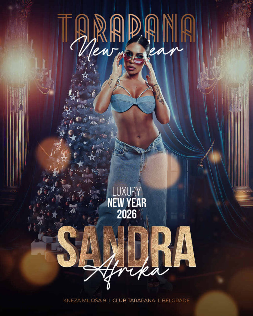 Pripremite se za doček Nove godine 2026. u Kafani Tarapana, gde će vas dočekati topla i domaća atmosfera. Ova kafana je savršeno mesto za sve koji žele da proslave ulazak u novu godinu u društvu prijatelja i porodice. Uz muziku talentovane Sandre Afrike, uživaćete u nezaboravnom provodu koji će trajati do ranih jutarnjih sati.