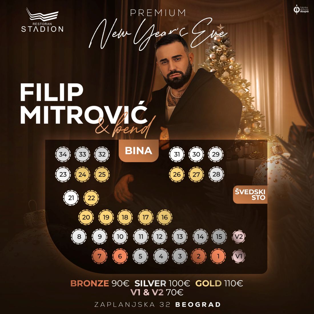Za novogodišnju noć pripremili smo spektakularan program, bogat meni i neograničeno piće, a za muzički deo biće zadužen Filip Mitrović i bend, čiji energični nastup svake godine podigne atmosferu do maksimuma!